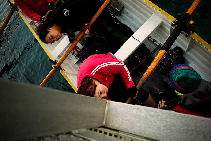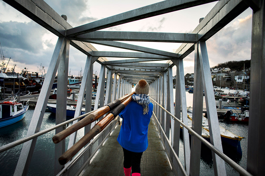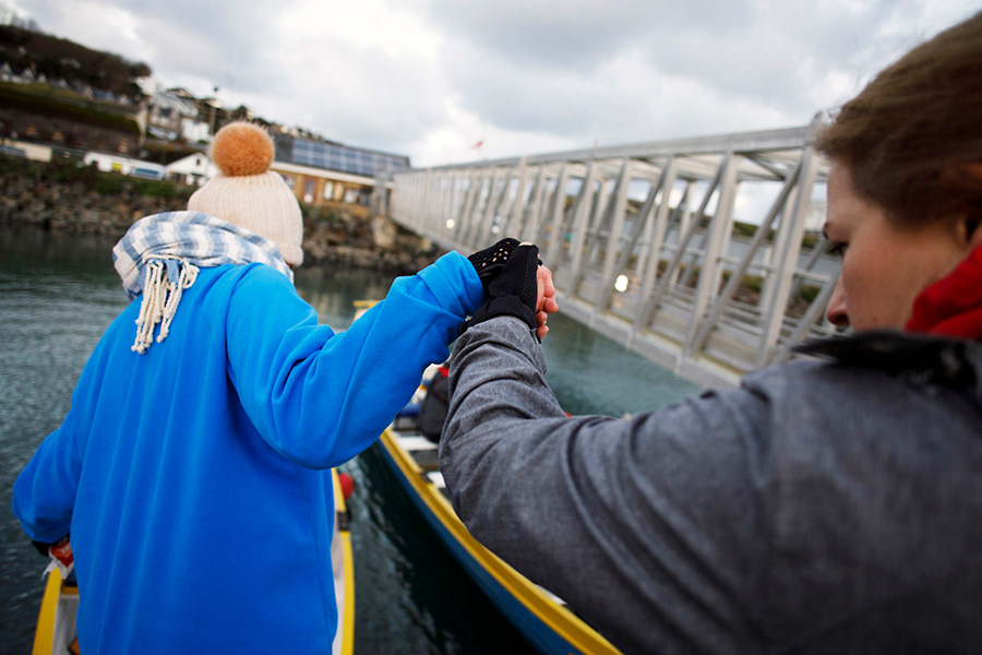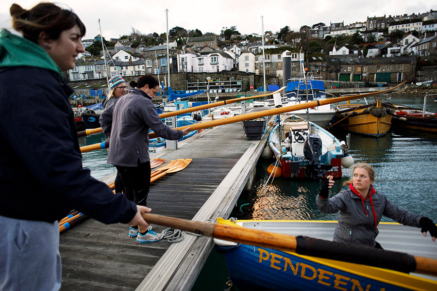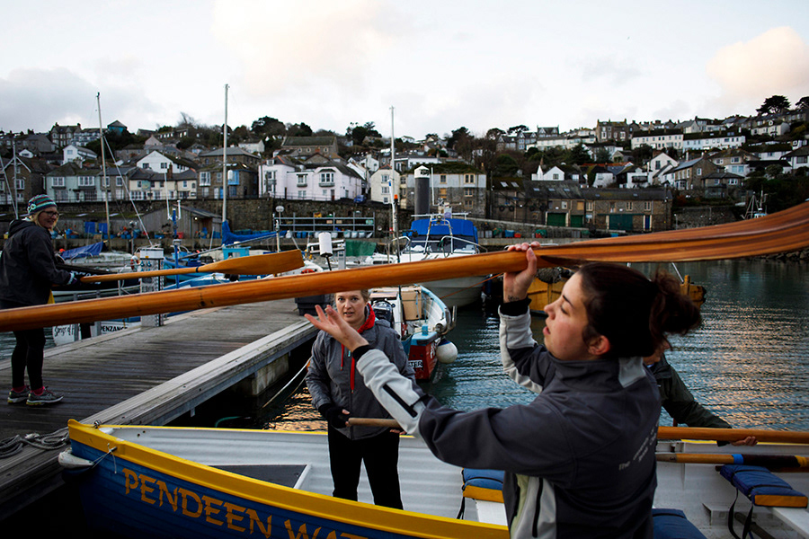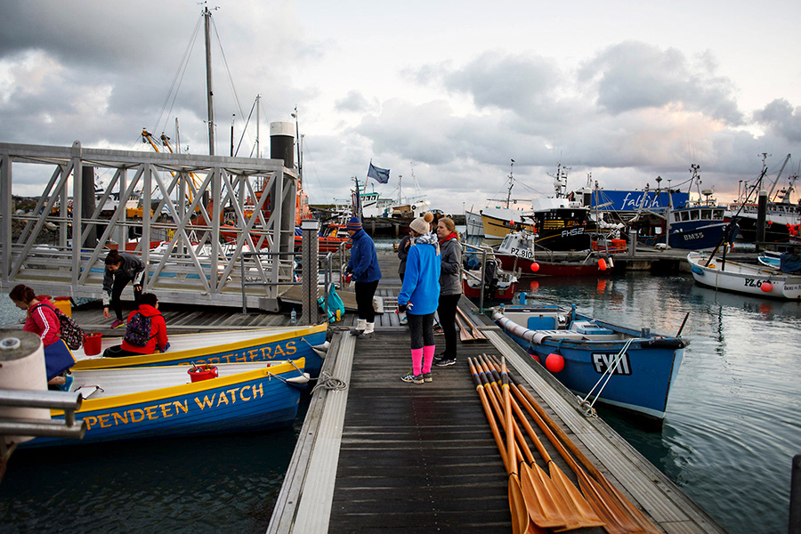 Pendeen Pilot Gig Rowing Club gets ready for a race in Newlyn, United Kingdom