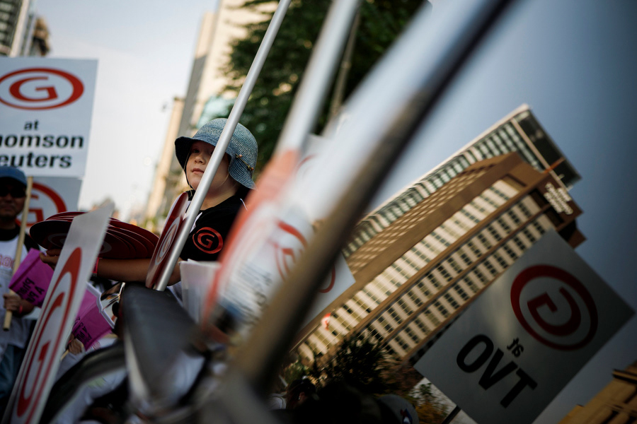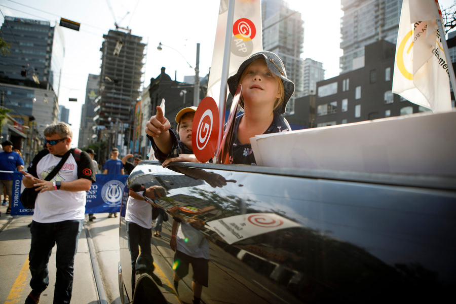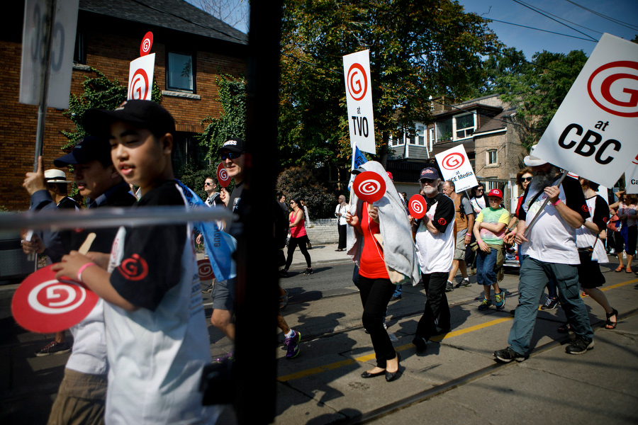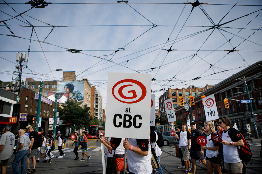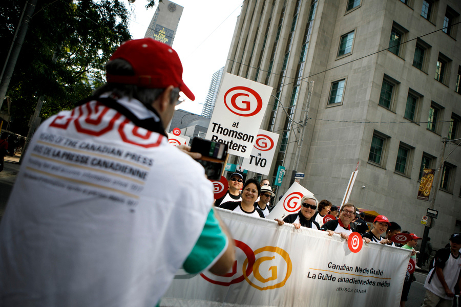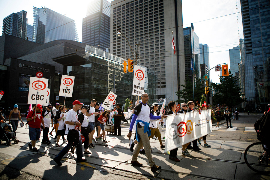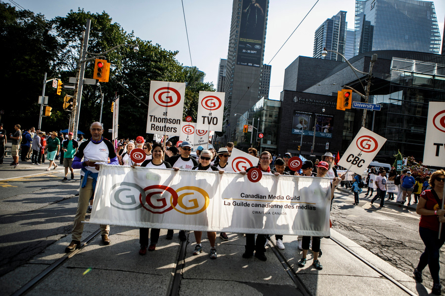 Canadian Media Guild (CMG) walked with thousands of unionized workers making their way through to Canadian National Exhibition (CNE) during Labour Day march